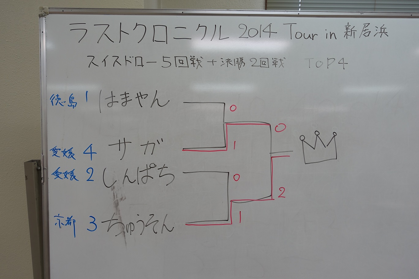 7月13日(日)新居浜商工会議所にてラストクロニクル2014TOURの大会が行われました。参加者9名、予選ラウンド5回戦を行い、決勝ラウンド進出者4名を決定しました。